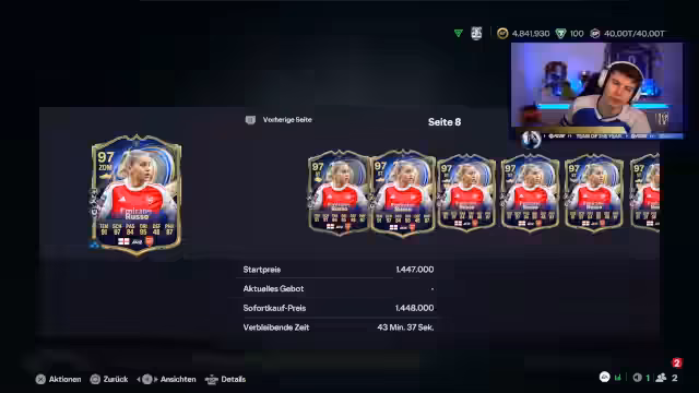 04:12:00Der Streamer öffnet seine restlichen Packs, darunter garantierte Packs und ein 3x87+-Pack. Die Ausbeute wird analysiert: Ein TOTY-Card ist nicht dabei, aber Coins und tradable Karten werden gesichert. Der Markt für Karten wie Russo und Pina wird bewertet. Es folgt eine persönliche Reflexion über den Stream – 14 Siege waren das Maximum gegen starke Gegner. Pina wird als beste Karte gelobt, auch wenn sie im Sturm besser performt.
