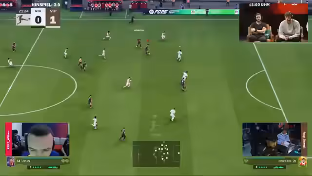 00:39:49Die erste Begegnung zwischen dem VfB Stuttgart und dem FC Bayern München beginnt, wobei der Fokus auf den Aufstellungen und den genutzten Spielkarten liegt. Für den VfB wird Dennis eingesetzt, während die Bayern auf einen Spieler mit der Olysee-Karte verzichten und stattdessen auf die Karl-Karte setzen. Nach anfänglichem Druck der Bayern geht der VfB überraschend in Führung durch einen platzierten Flachschuss. Das Spiel ist geprägt von schnellen Kontern und einer offenen, torgefährlichen Spielweise. Parallel dazu liefert das Spiel zwischen RB Leipzig und St. Pauli ein hohes Tempo, in dem Berghai offensiv stark agiert und die erste Halbzeit dominiert.