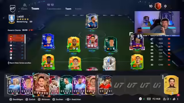 02:29:22Der Streamer aktualisiert das Team mit neuen Spielerkarten wie dem 92er Pays, der aufgrund hoher Nachfrage im Fokus steht. Es folgt eine Diskussion über Evolutions, insbesondere für Rashford, der trotz Leistungsschwankungen weiterhin im Einsatz ist. Die Leistung von Karten wie Courtois wird hervorgehoben, und es wird über strategische Wechsel nachgedacht, um das Team zu optimieren, während die Integration von Evolutions wie Totti oder Mbappé diskutiert wird.