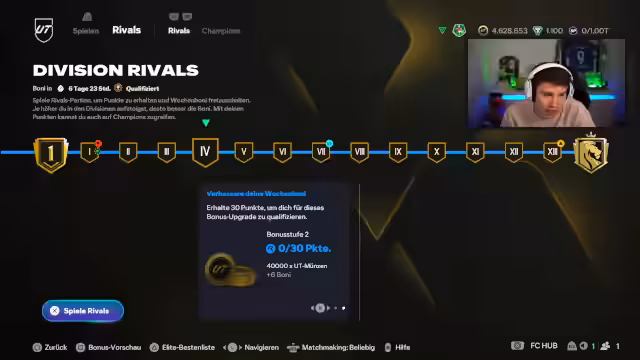 02:44:46Der Streamer beendet die erste Runde im Foot Draft und stellt fest, dass dieser Modus gefühlt der einfachste sei und rät den Zuschauern, ihn zu spielen. Er äußert sich kritisch über die Kosten von Draft-Spielen, die mit 15.000 Münzen oder 300 Points als überteuert empfunden werden, und vergleicht dies mit den Kosten für den Season Pass, der im Verhältnis günstiger erscheint. Er berichtet von einem Bug, bei dem ein Spieler dreimal die Draft-Belohnung erhielt, und fragt nach der Möglichkeit, dies zu reproduzieren. Die Diskussion dreht sich auch um die Sinnlosigkeit der hohen Kosten für Packs und den Season Pass im Vergleich zueinander. Es wird erwähnt, dass Packs ab morgen oder übermorgen gezogen werden können, und es wird nach gesammelten Rivals-Punkten gefragt. Der Streamer kritisiert die Community dafür, dass sie sich über Belohnungen beschwert, obwohl die Rivals-Rewards nun besser seien und 20.000 Münzen für 30 Punkte in Division 5 versprechen.