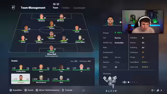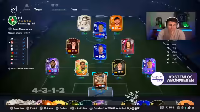 03:57:05Der Streamer reflektiert über seine schlechte Leistung und stellt fest, dass er keine Anweisungen für sein Team gesetzt hatte, was seine Spielweise erheblich beeinträchtigte. Er äußert Frustration darüber, gegen scheinbar schwächere Gegner zu verlieren und beschreibt den aktuellen Cup als extrem schwierig, insbesondere mit seinem Fun-Team. Er muss sich extrem anstrengen, um Tore zu erzielen, während seine Gegner scheinbar mühelos den Ball halten und gewinnen können. Die Meta-Evos seiner Gegner fressen sein Team regelrecht auf, und er kann bestimmte Spieler wie den „Kammer-Winger“ nicht mehr sehen. Er hat den Cup bereits dreimal versucht und dreimal verloren, was ihn an seiner eigenen Leistung zweifeln lässt. Er vermutet, dass seine Spielerwahl und die fehlenden Anweisungen maßgeblich zu seinen Niederlagen beitragen.