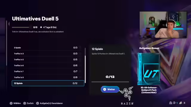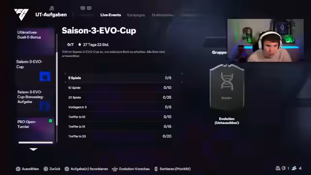 01:38:48Der Streamer stellt fest, dass der aktuelle Cup anspruchsvoller ist als erwartet. Er kämpft mit der Teamzusammenstellung und der Effizienz bei der Erledigung der Aufgaben. Trotz der anfänglichen Schwierigkeiten, wie das Verlieren von Spielen und das Verpassen von Toren, bleibt das Ziel, möglichst viele Aufgaben zu erfüllen, bevor die Spieler in Packs zurückkehren. Die Notwendigkeit, zehn Spiele ohne Gegentor zu absolvieren, wird als besonders schwierig im Rivals-Modus eingeschätzt, weshalb der Versuch in Live-Events in Betracht gezogen wird. Die Diskussion über die Schwierigkeit des Cups und die Qualität der Gegner, die oft E-Sportler oder Spieler mit optimierten Evolutionen sind, zieht sich durch diesen Abschnitt. Es wird auch über die Möglichkeit gesprochen, im Finale des Cups aufzugeben, um weitere Runden spielen und mehr Aufgaben erledigen zu können.