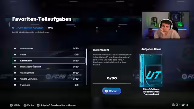 00:30:24Der Streamer diskutiert die neuen Evos wie 'Pink Pro' und 'Jockey in Silber' und fragt nach neuen Squad Battle Rewards. Er plant, ein Footdraft zu spielen, um zu sehen, ob sich die Draft-Rewards geändert haben, da dies in der letzten Season der Fall war. Er testet ein schnelles Footdraft und stellt fest, dass es neue Rewards gibt, wie 10x82+ Packs, was eine Verbesserung darstellt. Er kritisiert die Cups, insbesondere das 'Ultimative Duell', als langweilig und nicht durchdacht, da sie ein Spiellimit haben und Spieler dazu neigen, einzuklemmen, anstatt zu spielen. Er schlägt vor, die Spiellimits zu entfernen oder Golden Goal einzuführen, um den Spielspaß zu erhöhen. Er beklagt, dass die Aufgaben zu viel Zeit in Anspruch nehmen und die Spieler frustrieren, anstatt sie zu belohnen.