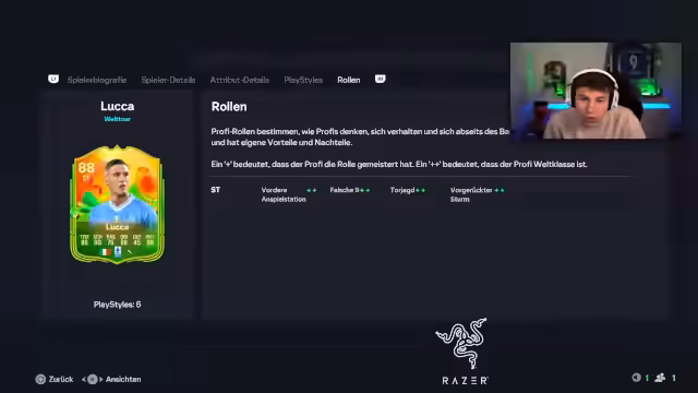 04:25:31Der Streamer analysiert die Möglichkeiten, seine Spieler durch Evolutionen zu verbessern, insbesondere Carlos Alberto, den er auf 87 Defensive bringen möchte. Er diskutiert die Vor- und Nachteile verschiedener Evolutionen, wie zum Beispiel die Vergabe von Stärke und Defensive versus Tempo. Er überlegt, welche Playstyles am besten zu seinen Spielern passen würden, und bedauert, dass er Jude Bellingham kein goldenes Finesse geben kann. Er plant, eine bestimmte Evolution für einen Schalker Spieler zu nutzen, da das Tempo von drei Punkten als extrem wichtig erachtet wird. Er ist begeistert von den potenziellen Verbesserungen, die Alberto durch die Evolutionen erhalten könnte, und vergleicht ihn sogar mit teureren Spielern wie Ibanjes.