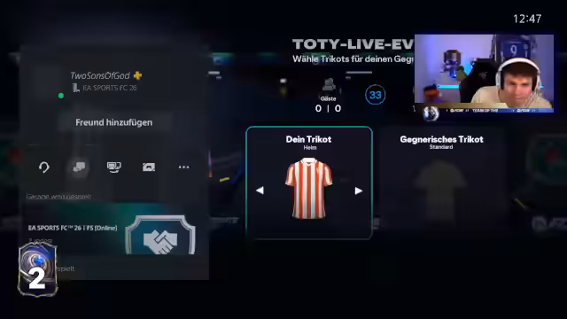 02:33:59Nach über 40 Pack-Öffnungen äußert der Streamer große Überraschung über die Animation der gezogenen Team of the Year (TOTY)-Karten, die er bisher noch nie live gesehen hatte. Die Freude über die Karten wird durch anhaltende technische Probleme mit langen Ladezeiten überschattet, besonders bei der ersten Pack-Öffnung auf PS4. Parallel dazu entbrennt eine lebhafte Debatte im Chat über die Regeln des Battles. Der Streamer erklärt, dass der erste gezogene Totti als Gewinnertropf gilt, sein Gegner jedoch auf ein Punktesystem pro gezogenem Totti besteht, was den Streamer verärgert, da er als schnellerer Spieler einen klaren Sieg erwartet hätte.