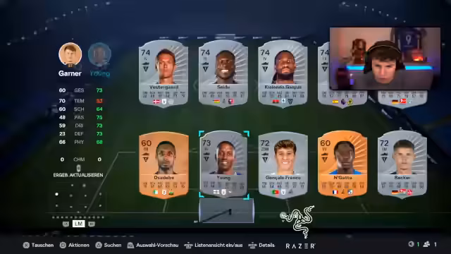 02:03:12Zu Beginn der Stream-Session wird die 'Challenge' gestartet, bei der Streamer mit einem neuem Account in FC 26 antreten. Das Hauptziel ist es, Teams für das Gauntlet-Event aufzubauen und die perfekte Runde zu erreichen. Zuerst werden verschiedene Spieler und mögliche Evo-Karten diskutiert, wie Nico Williams, dessen potenzielle Einbindung ins Team als sehr wichtig angesehen wird. Nach dem Pack-Opening und dem Bau eines ersten Squads, das unter anderem Spieler wie Gomez und Suzuki enthält, beginnt das erste Gauntlet-Spiel.