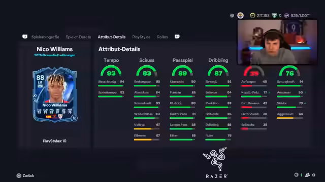00:09:26Es folgen Diskussionen über Duellsituationen und Erfahrungen mit bestimmten Spielern. Besonders erwähnt wird Bruno Trailblau, der als tradable und wertvoll gilt. Der Streamer teigt seinen Kritikpunkt an, dass bestimmte Team-Buildings ohne Playstyles wie 'Technical' unvollständig sind. Gleichzeitig lobt er Spieler wie Flo mit hohem Potenzial, der durch seine physische Stärke und Fähigkeiten als unberechenbar im Spiel beschrieben wird.