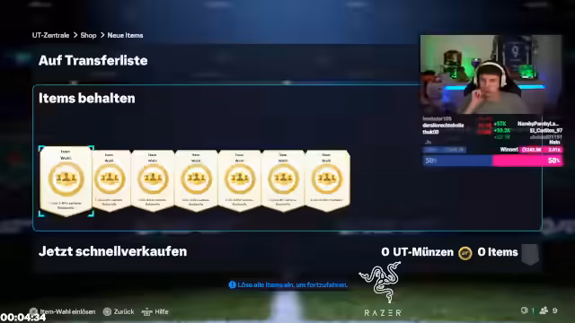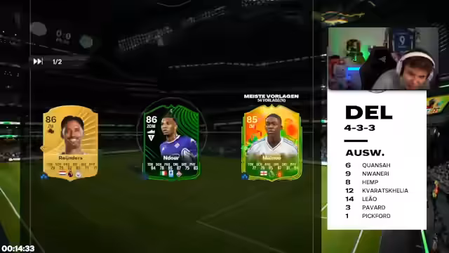 00:08:49Der Streamer hat bereits 100 Packs gespart und überlegt, diese heute zum Black Friday zu öffnen, da viele gute Karten verfügbar sind und es sich im Vergleich zum Warten auf das Team of the Year im Januar mehr lohnt. Er plant, um 15 Uhr mit dem Öffnen der Packs zu beginnen und bis kurz vor 16 Uhr zu streamen. Zudem spricht er über die Max-91er-Basis-Icon-Pack-SBC, die zwar teuer ist, aber gute Spieler verspricht. Er hat Schnittstellen-Pro-Evos offen und lädt die Community ein, ihn einzuladen, wenn sie welche machen. Er muss noch ein Spiel in einem Cup gewinnen, um weitere Packs abzuholen, und hat bereits eine enorme Menge an Packs angesammelt. Des Weiteren diskutiert er die Sinnhaftigkeit einer Flash-Evo für einen Verteidiger, die ihm nicht vollständig überzeugt, obwohl die Karte theoretisch gut wäre. Er erwähnt auch eine Road to the Final SBC und das Problem, dass ein Spieler durch eine Tätlichkeit vom Platz flog, was seine Upgrades beeinträchtigt.