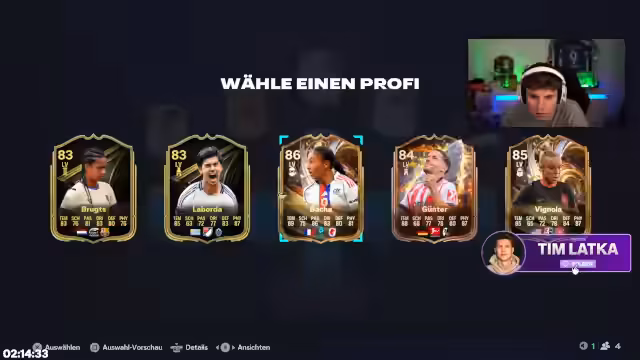 05:12:02Im letzten Abschnitt des Pack-Openings zieht der Streamer weitere Informs und einige Special-Karten, darunter Campos als Hero, der jedoch als Enttäuschung empfunden wird, da es bessere Alternativen gegeben hätte. Die Anzahl der gezogenen Informs ist weiterhin bemerkenswert hoch, was den SBC-Speicher des Streamers füllt. Er zieht einen tradebaren Thuram für 49.000 Coins, was als guter Gewinn verbucht wird. Trotz der vielen Packs aus Silber Cup, Gauntlet, allen Turnieren und sieben Footdraft-Siegen konnte keine Top-Icon oder ein Schalker Spieler gezogen werden. Der Streamer resümiert, dass er zwar keine Maradona-Karte gezogen hat, aber dennoch zufrieden ist. Er hat mit Marzen und Thuram zwei Karten gezogen, die ihm über 100.000 Coins eingebracht haben, plus jede Menge Informs und Fodder für zukünftige SBCs. Olga und Russo werden als weitere gute Karten hervorgehoben. Er ist insgesamt zufrieden mit der Breite seiner Ausbeute und gelobt, dass er sich die Icon diese Woche noch holen wird. Der Streamer verabschiedet sich von seiner Community, kündigt an, morgen früh wieder live zu sein, um Weekend League zu spielen, und raidt seinen Freund Paxi.