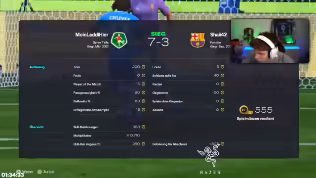 03:55:48Der Streamer reflektiert über die Frustration, wenn Gegner sich nicht an die Golden Goal-Regel halten, was er als seltenes und ärgerliches Verhalten empfindet. Er betont, dass die meisten Spieler sich daran halten und es eine effiziente Methode ist, um schnell Spiele zu absolvieren. Er schildert seine Erfahrungen in Flash Clubs, wo er oft verliert, und drückt seinen Wunsch aus, dass seine Gegner das Spiel fortsetzen, anstatt es zu pausieren. Die Diskussion dreht sich auch um die Effizienz von Golden Goal im Vergleich zu regulären Spielen, wobei er argumentiert, dass man damit deutlich schneller vorankommt. Er erwähnt, dass er in 15 Minuten drei Spiele machen konnte, was die Zeitersparnis verdeutlicht. Zudem wird die Wichtigkeit von Playstyles in FIFA hervorgehoben, insbesondere im Hinblick auf die Meta und die Effektivität von Spielern wie Bissek und Sanchez, die als 'OP' (overpowered) beschrieben werden. Der Streamer bleibt dabei, dass Golden Goal die bevorzugte Methode ist, um schnell Fortschritte zu erzielen und Spaß am Spiel zu haben, auch wenn es manchmal zu unfairen Situationen kommt.