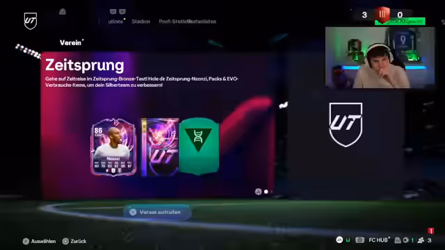 00:03:48Zu Streambeginn präsentiert der Streamer sein neu aufgestelltes Team für die Weekend League. Er erwähnt das Erspielen von Dante und Alexis, wobei er Timo über den Discord kontaktiert, um den Einsatz abzustimmen. Nach einer anfänglichen Verwirrung über den Status von Alexis entscheidet sich der Streamer für einen Mix aus erfahrenen und neuen Spielern, wie Cafu für die defensive Stabilität gegen Mbappé und Pushkas als offensive Verstärkung.