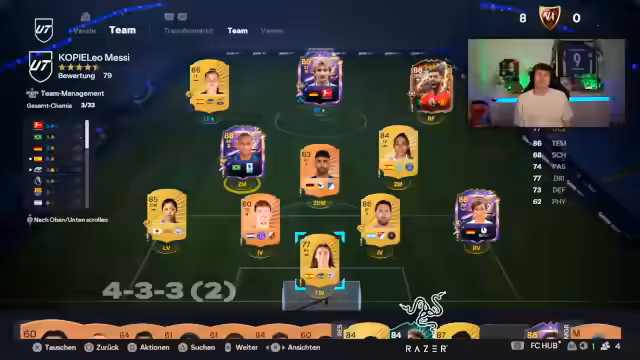 04:06:08Der Streamer startet die Glücksrad-WL-Challenge gegen xpazzoo und thematisiert unmittelbar die Spielmechaniken sowie die Taktik. Es geht um die Analyse der gegnerischen Formation, insbesondere um die Verteidigung gegen 4-2-1-3, die als problematisch beschrieben wird. Spieler wie Pina werden kritisch bewertet, während Diskussionen über die Effektivität bestimmter Spielertypen und das Kickoff-Verhalten dominieren. Parallel dazu wird die Stimmung des Spiels diskutiert, mit Frust über starke Gegner und unfaire Mechaniken.