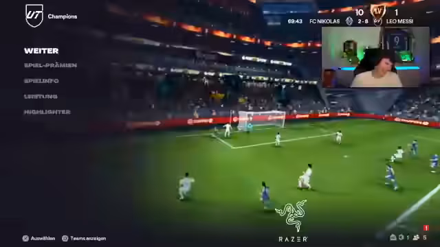 01:10:13Kurz vor Matchstart wird die Teamstärke verglichen. Pazzo bemerkt die Schwächen in seiner Abwehr, während sein Team bessere Einzelspieler haben soll. Der Chat diskutiert die Vor- und Nachteile beider Teams. Der Streamer betont die Wichtigkeit der Einstellungen und bereitet sich auf das erste Spiel vor. Als technische Hinweise werden noch Spielerschatten und Trikotprobleme erwähnt. Beide Spieler gehen schließlich direkt in das erste Spiel, begleitet von Aufregung und der Hoffnung auf spannende Matches.
