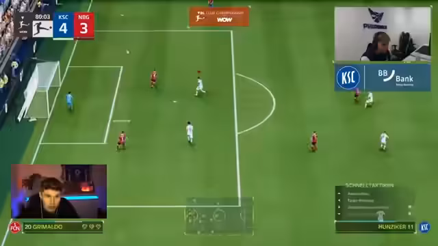 01:32:32Es wird überlegt, eine Vorhersage für das Furky-Spiel zu machen, bei der man auf den ersten Torschützen wetten kann. Der Streamer überlegt, ob er selbst bei der VBL moderieren soll, um seine Punkte einzusetzen. Er wird von VBL Official als Moderator für den Kanal hinzugefügt. Währenddessen läuft das Spiel zwischen Hoffenheim und Regensburg, bei dem Manu von Regensburg versucht, seine erste Niederlage abzuwenden. Lubapé von Hoffenheim könnte mit einem Sieg wichtige Argumente für die nächsten Wochen sammeln und sich für die Einzelspiele empfehlen. Steffen wettet mit seinen Kanalpunkten auf Adnan Real. Die Meta-Formation im E-Sport wird diskutiert, wobei 4-2-1-3 und 4-4-2 häufig gespielt werden. Merlin soll die Wette schließen, während die letzten Sekunden des Spiels zwischen Hoffenheim und Regensburg laufen. Lubapé sichert den Sieg für Hoffenheim, und Steffen setzt alles auf Adnan Real mit einer 3er-Quote. Fuki erzielt ein Tor, wodurch Steffen seine Kanalpunkte verliert.