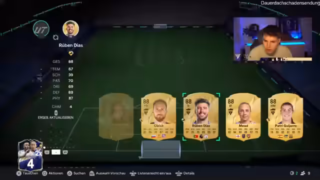00:09:35Nach einer langen Durststrecke, in der trotz des Einsatzes von vier Millionen Münzen nur ein Martinez gezogen wurde, äußert der Streamer seine Frustration. Er hat das Gefühl, seinen Ruf als Pack-Lucky zu verlieren, da die Zuschauer ihm nach Gutem schauen und er sie mit blauen Karten enttäuscht. Die Leidenschaft fürs Ziehen von guten Karten und das Ziel, heute ein TOTY zu bekommen, sind sein Antrieb.
