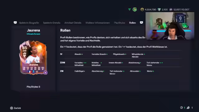 00:34:39Der Streamer zieht einen 87er Gioro und einen 88er Donnarumma, gefolgt von einem 90er Spieler, was ihn sehr freut und ihn zu der Annahme führt, dass er heute Mbappé ziehen könnte. Er erwähnt, dass er auch beide Showdown-Karten mitgenommen hat. Er rät davon ab, Packs zu kaufen, und empfiehlt stattdessen, in Season Passes oder Evolutions zu investieren. Er plant, eine Evo für Carlos Alberto zu machen, um ihm silberne Playstyles zu verleihen, was jedoch ein 'Rush Objective' erfordert, das er als sehr anstrengend beschreibt. Währenddessen hilft er seiner Frau Lea, die in 'Hayday' Landurkunden benötigt, indem er die Community um Hilfe bittet und Transaktionen über den Chat organisiert.