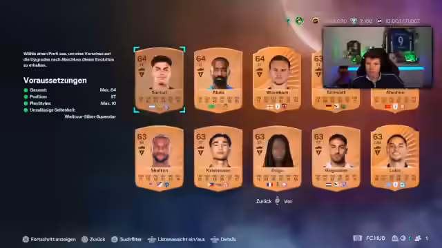 01:39:03Der Streamer stellt sein Silberteam zusammen, wobei er feststellt, dass er kein fertiges Team mehr hat. Tim Boss wird ins Tor gestellt, um seine Evolution abzuschließen. Die Auswahl der Spieler erfolgt strategisch, um ein starkes Team für den Silber Cup zu bilden. Spieler wie Brian Lassme, Felix Passlack und Chavez werden in Betracht gezogen. Es wird auch über die neue Openda Evo gesprochen, wobei der Streamer davon abrät, Openda zu verwenden, da dies zu langweilig sei und viele andere Spieler dies tun. Stattdessen entscheidet er sich, eine Evolution für Justin Obigwo aus Trinidad und Tobago zu starten, um eine 'krasse Chain' zu ermöglichen und ein einzigartiges Team aufzubauen. Er muss mit Obigwo zwei Partien spielen und drei Tore schießen, bevor er ihn weiterentwickeln kann. Der Silber Cup wird als die schnellste Möglichkeit gesehen, diese Ziele zu erreichen. Die Euphorie über Obigwo ist groß, und der Streamer scherzt, dass niemand Eusebio braucht, wenn man Obigwo hat.