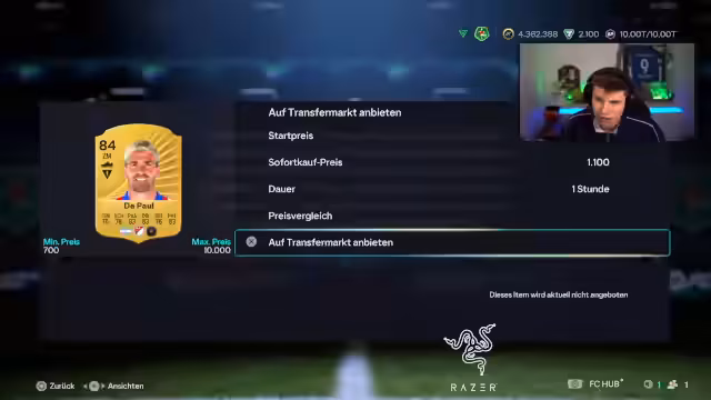00:00:50Der Streamer begrüßt seine Zuschauer und kündigt an, ein Eilgepäck zu öffnen, worauf er sich sehr freut. Er erwähnt auch, dass ein neues Icon-Pack verfügbar ist und eine neue Silber-Weekend-League gestartet wurde. Mit 4,25 Millionen Münzen plant er, die Gauntlets fertigzustellen, um weitere Packs zu erhalten. Er äußert seine Abneigung gegen Cups, bei denen die Gegner nicht aufgeben, da dies das Spiel langweilig macht. Ein Ziel ist es, ein Spiel für Simeone zu absolvieren, und er prüft den Shop auf weitere Möglichkeiten. Er fragt die Community nach ihren Erfahrungen mit Icon-Packs und betont, wie wichtig es ist, trotz schlechter Ziehungen motiviert zu bleiben.