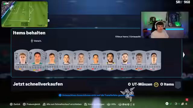 00:52:11In einer ruhigeren Phase zwischen den Spielen geht der Streamer auf seine langfristigen Pläne für den Verein und die im Season Pass erhaltenen Karten ein. Er erklärt, dass er nicht sofort alle Spieler aufwerten werde, sondern auf zukünftige, normale Evos wartet, die eventuell nur für bestimmte Spieler verfügbar sind. Er möchte die Karten wie Tolu und Kellyman leveln, da sie in zukünftige Evos einfließen können. Gleichzeitig denkt er über die Aufteilung des höheren Rating auf dem Team nach, das er durch das Ausrüsten von zwei zusätzlichen Spielern mit über 88 OVR nutzen könnte, um die allgemeine Qualität des Squads zu erhöhen.