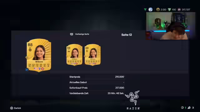 03:00:49Der Streamer beschäftigt sich intensiv mit dem Kauf von Spielern und dem Aufbau eines neuen Teams. Nach anfänglichem Interesse an Sophia Smith entscheidet er sich gegen den Kauf, da der Preis von 220.000 zu hoch ist und er das Gefühl hat, übertölpelt zu werden. Stattdessen verfolgt er alternative Strategien wie den Kauf von Bobby für einen Comeback oder die Nutzung von Finesse mit Spielern, die ein gutes Weakfoot haben. Das Budget ist mit nur 6.000 Münzen knapp, was zu der Überlegung führt, die Coins aufzuladen oder das Team mit weniger teuren Spielern zu umgehen.