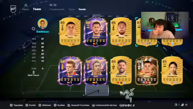 00:03:20Der Stream beginnt mit Ankündigung, dass Eden Hazard für 1,3 Millionen Münzen gekauft wurde. Der Streamer äußert sich begeistert über die potenziellen Spielstärken der Karte, insbesondere das hohe Dribbling-Level. Er analysiert den aktuellen Goldmarkt, der aufgrund mangelnder Liquidität stark gefallen ist, und identifiziert Goldinvestitionen als zentrale Strategie für den Tag.