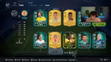 01:25:36Nachdem das Team seine Aufgaben in Squad Battles erfolgreich abgeschlossen hat, wird die Zeit für den Teambau genutzt. Ein zuvor entdeckter Bug mit der Eusebio-Karte, die nun in mehrere Evolutions einsetzbar ist, wird von EA schnell behoben. Der Streamer öffnet daraufhin mehrere Pack-Jackpots, bei denen er mehrere Walkouts und hochwertige Spieler wie Vitinha und KDB zieht, was den Teambau vorantreibt und die Zuschauer begeistert.