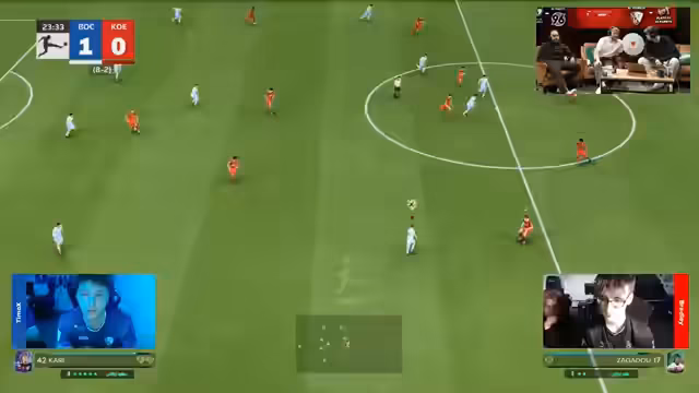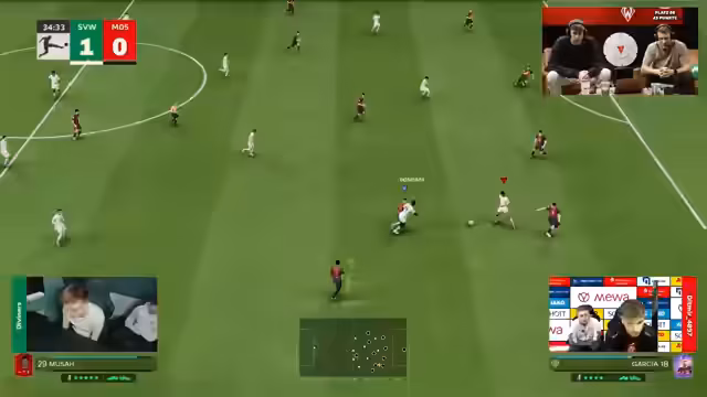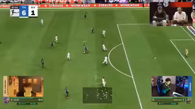 01:00:00Der Streamer vergleicht die Einzelbilanzen der Spieler. Die von J7 und die von Kinoro sind ausgeglichen, was eine dramatische Wende im Spiel ermöglicht. J7 hat bereits eines der größten Comebacks der VBL mit 5:1 geschafft. Auch bei Mainz ist ein Comeback im Spiel nicht völlig ausgeschlossen, obwohl die Luft nach der hohen Führung der Bremer raus scheint. Die gedankliche Ausrechnung der nötigen Tore und die verbleibenden Minuten wird thematisiert, was die Spannung für die verbleibende Spielzeit aufrechterhält.