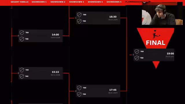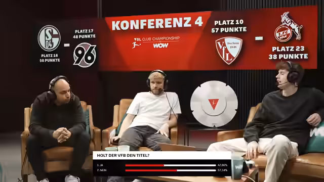 00:09:52Der Streamer begrüßt seine Zuschauer zur letzten Show vor den VBL-Finals und präsentiert das Ko-Panel mit Keanu, Mo Auba und Richard. Es wird erklärt, dass heute die Playoffs im K.o.-System stattfinden, um die letzten acht Plätze für das Finale in Hamburg zu vergeben. Zusätzlich wirbt er für den Naming-Ride-Partner WOW, erwähnt das Bundesliga-Topspiel zwischen BVB und Bayern und kündigt an, dass Zuschauer im Stream Wow-Geschenkkarten gewinnen können, indem sie ihre VBL-Knowledge zeigen.