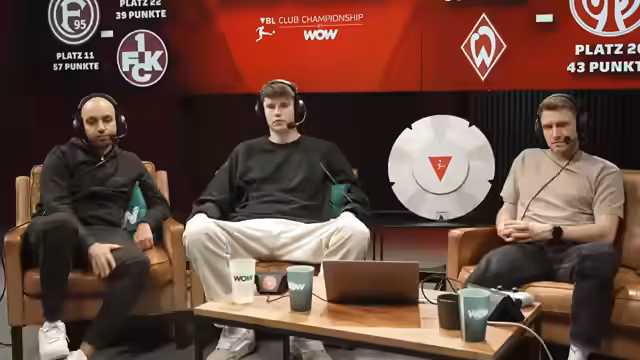03:28:16Abschließend geben die Kommentatoren einen Ausblick auf bevorstehende Live-Übertragungen, insbesondere das bevorstehende Spitzenspiel zwischen Borussia Dortmund und Bayern München, das bei WOW zu sehen sein wird. Sie erwähnen auch noch ausstehende Spiele im Playoff-Format wie das Derby zwischen Schalke und Dortmund sowie das Spiel zwischen Bochum und Köln, für die sie ein Tippspiel mit dem Chat ankündigen.