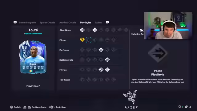 04:09:27Gekoppelt mit der Footdraft-Aktion wird das Razer Black Shark V3 Pro Headset intensiv beworben. Der Streamer hebt die vielfältigen Anschlussmöglichkeiten, das Noise-Cancelling, die lange Akkulaufzeit und die Schnelllade-Funktion hervor und wirbt mit einem exklusiven Rabattcode. Gleichzeitig findet ein Footdraft-Spiel statt, in dem er Teams mit Spielern wie Ori, Pat und Claudia Pina aufstellt und dabei über Spielstil und Leistung der einzelnen Akteure spricht.