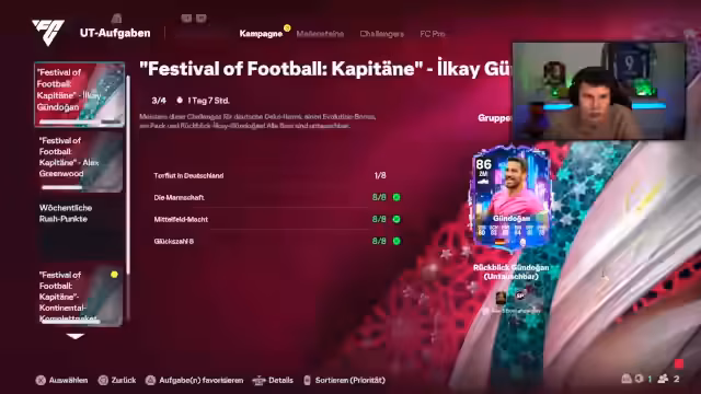 Ein Spieler konzentriert sich auf das Öffnen der Elite Rivals Belohnungen und die Teilnahme am Silbercup in EA Sports FC 26. Er diskutiert Teamzusammenstellungen, Gameplay-Tipps und die Auswirkungen des aktuellen Patches. Zudem werden SBCs abgeschlossen und die Preise von Icon-Karten auf dem Transfermarkt analysiert. Die Interaktion mit anderen Spielern und die Community stehen ebenfalls im Fokus.