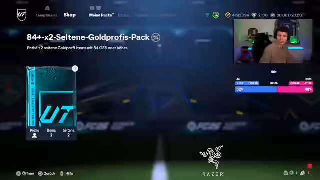 01:24:03Es wird diskutiert, ob ein Squad Battle für 3000 XP gespielt werden soll, um neun Spieler zu erhalten. Der Streamer erinnert sich an einen Draft Token, den er vor zwei Tagen in einem Vorschau-Pack gesehen, aber nicht gekauft hatte, weil er ihn im Stream zeigen wollte. Er sucht nun nach dem Token und stellt fest, dass er nur noch einen besitzt, was ihn ärgert, da er glaubt, dass dieser schon länger im Besitz ist und er sich über die schlechte Ausbeute aus den Packs beklagt. Er äußert seine Frustration über die fehlenden 'Informs' und die geringen Erträge aus den Packs, die selten Spieler über 50.000 Münzen enthalten. Er erwähnt auch eine eingefrorene Rivals-Partie und gibt den Tipp, das Spiel neu zu starten.
