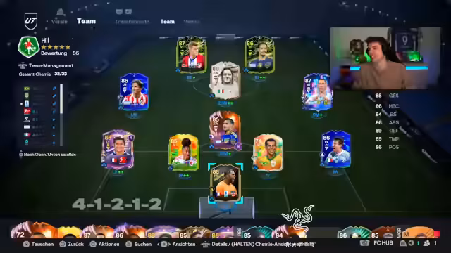03:19:24Der Streamer verteidigt die Rolle von Bernardo in seinem Team, da dieser drei Portugal-Links bietet und als Captain-Karte eine gute Option für das linke zentrale Mittelfeld ist. Bernardo verfügt über wichtige Playstyles wie 'Batterie' für Ausdauer, 'Game Changer Flachschuss' für offensive Aktionen und 'Tiki Taka' für Passspiel, sowie 'Allrounder Plus' und 4-4 Fähigkeiten. Die Diskussion verlagert sich auf die Effektivität von Spielern wie Dev, der aufgrund seiner Kopfballpräzision höher positioniert sein könnte. Die Unsicherheit, ob drei defensive Mittelfeldspieler, die nicht gut verteidigen können, eine gute oder schlechte Idee sind, wird angesprochen. Die Suche nach einem geeigneten Holländer bleibt eine zentrale Herausforderung, um die Teamchemie zu vervollständigen. Die Überlegung, ob Ikonen wie Futre oder Leao als offensive Optionen infrage kommen, zeigt die Flexibilität in der Spielerwahl, während die Ablehnung von Spielern wie Simmons und Snyder aufgrund ihrer Leistung die hohen Ansprüche des Streamers verdeutlicht.