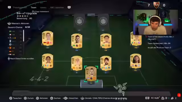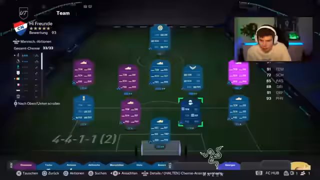 00:03:24Der Stream beginnt mit einer Besprechung der Vorbereitung für die Weekend League. Es werden Münzen im Wert von 732.000 vorgelegt, und der Streamer experimentiert mit verschiedenen Team-Formationen, um Abwechslung zu schaffen. Er äußert Unzufriedenheit mit den aktuellen Karten, besonders wegen des Rivals-Grinds, und zieht Spieler wie Gouissant in Betracht. Der Shoppack-Plan wird erörtert, wobei mehrere Optionen von 575.000 bis 450.000 Münzen besprochen werden. Auch die Wahl zwischen verschiedenen SBCs wie Team of the Season und Future Stars ist Thema.