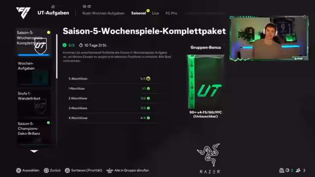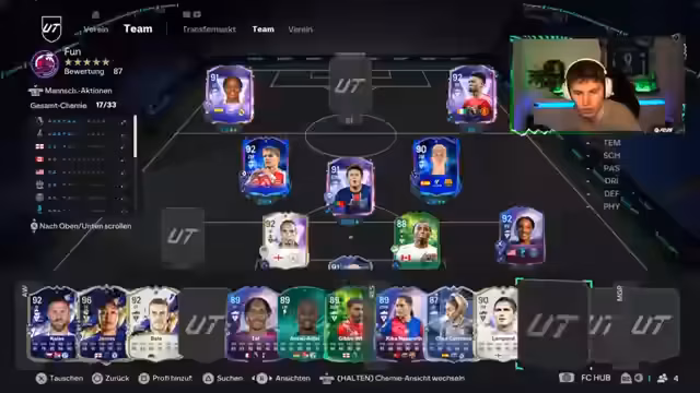 00:03:31Der Stream beginnt mit einer Marktkommentar: Rodri wurde für 4,638 Millionen Coins erworben, was als sehr guter Preis angesehen wird. Der Diskurs konzentriert sich darauf, wer der zweitbeste ZDM im Spiel ist, wobei Matuidi, Schweinsteiger, De Jong und McAllister genannt werden. Der Fokus liegt auf dem geplanten Aufbau eines Teams mit Rodri, Olmo und Ödegaard. Die Entscheidung zwischen SBCs wie Mondi, Dini und Hullit für zukünftige Evos und die Herausforderungen bei der Teamchemie, insbesondere bei Rechtsverteidigern, werden erörtert. Ein neues Partnerunternehmen, Razer, wird vorgestellt.