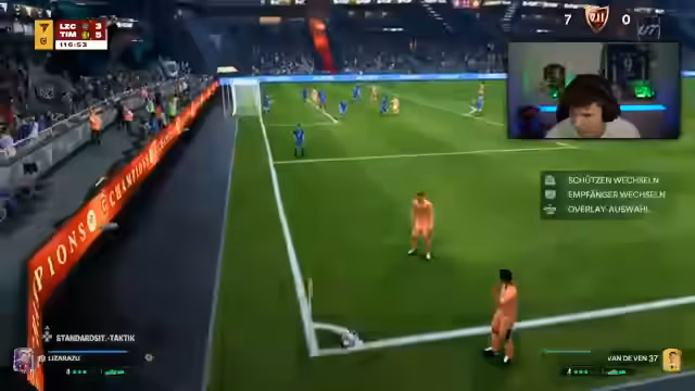 01:58:26Im weiteren Verlauf des Streams häufen sich die frustrierenden Momente. Der Streamer ist über das Spiel selbst verärgert, insbesondere über als ungerecht empfundene Tore und die CPU-gesteuerte Verteidigung. Er beschreibt, wie Gegner durch einfache, repetitive Spielzüge wie L1-Dreieckspässe zum Erfolg kommen und seine eigenen Spieler den Ball verlieren, ohne dass er eine Kontrolle darüber hat.