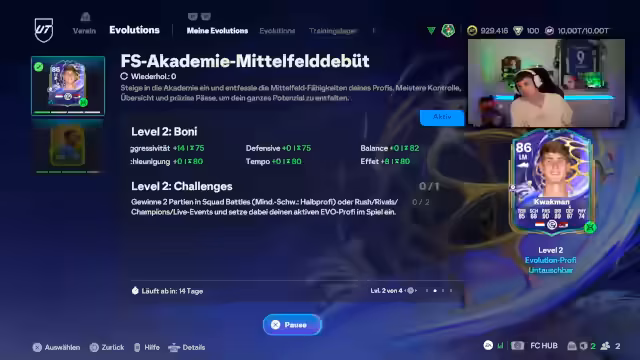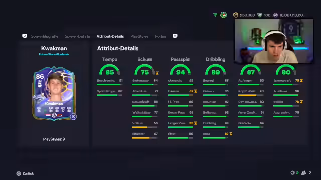 00:05:19Die Diskussion konzentriert sich auf verschiedene Spielerkarten und deren Evolutionsmöglichkeiten. Der Streamer zeigt sich begeistert von Fortnite-Spielern mit 980 Stunden Spielzeit und analysiert die Evolution von Quackman. Er betont die Notwendigkeit von Gamechangern für Stürmer und plant, Quackman spezifische Evos wie Wall in the Bag und Futurster Academy zu geben, um seine Defensivwerte zu verbessern. Außerdem wird die strategische Bedeutung von Rollen wie LM und LV diskutiert.