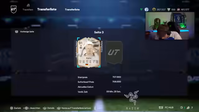 03:35:17Im Laufe des Rivals-Spiels wird die Dominanz des eigenen Teams betont, insbesondere der Schlüsselrolle von Olli Kahn im Tor, der als 'Der Titan' bezeichnet wird. Der Streamer äußert die Überzeugung, dass das Team die Punkte holen wird, und analysiert die individuellen Leistungen von Spielern wie Rui Costa und Saliba. Auch spielerische Entscheidungen wie das Fehlen von Teampressing werden kritisch betrachtet. Auf dem Transfermarkt wird die geringe Nachfrage für bestimmte Spieler wie Costa thematisiert und diskutiert, ob der Kauf von Olli Kahn aufgrund seines geringen Marktwerts eine gute Investition sei.