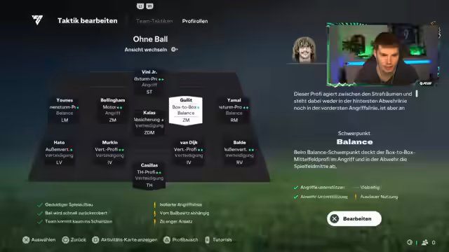 00:19:07Es wird intensiv am Teambau gearbeitet, wobei verschiedene Spieler wie Baku, Dymfries, Balde und Thüram in Betracht gezogen werden, um die Rechtsverteidigerposition zu besetzen. Balde erweist sich als besonders interessant aufgrund seiner Fähigkeiten und der Möglichkeit, ihn zusammen mit Lamin auf einer Seite einzusetzen, obwohl sein Preis hoch ist. Die Entscheidung fällt schließlich auf Balde, um das Team zu verstärken. Hullit und Bellingham werden ins Team integriert, wobei Hullit mit einem Hunter ausgestattet wird, um ihn erneut zu testen. Die Bank wird mit James, Schweinsteiger, Bale, Ferdinand und Cancelo bestückt, um verschiedene Optionen zu haben. Anschließend wird die Evolution von Armin Younes gestartet, um seine Fähigkeiten zu verbessern. Es wird ein Spiel absolviert, um Tiki Taka zu aktivieren, gefolgt von Just Like Jamie und Shooting. Die Formation wird angepasst, um Younes optimal einzusetzen, obwohl dies einige Bedenken hinsichtlich der Balance des Teams aufwirft. Das erste Spiel wird mit dem neuen Team bestritten, wobei Armin Younes direkt ins Spielgeschehen eingreift und Chancen kreiert. Die neue Abwehr um Hatto macht einen vielversprechenden Eindruck, und es wird erwartet, dass sie sich im Laufe des Spiels weiter verbessert.