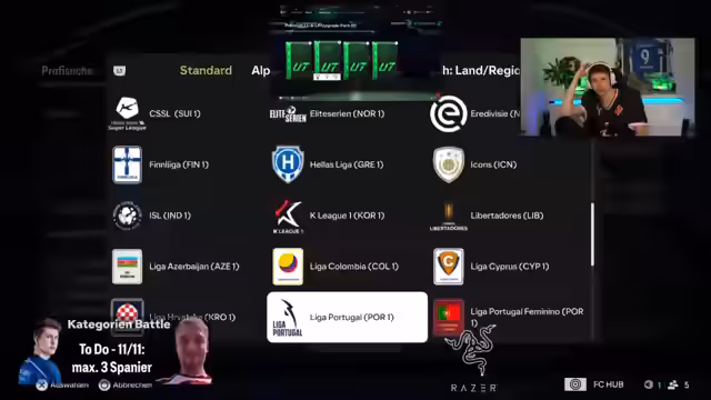 00:23:32Das Battle beginnt mit der ersten, eigentlich simplen Kategorie: zwei Spieler vom FC Barcelona ziehen. Beide Streamer erleben eine extrem unglückliche Serie, in der sie trotz der Öffnung zahlreicher Packs nur jeweils einen Barca-Spieler ziehen. Besonders frustrierend ist, dass fast alle anderen gezogenen Spieler von Real Madrid und Atletico Madrid stammen, was den Schwierigkeitsgrad dieser ersten Kategorie drastisch erhöht und das Gefühl aufkommen lässt, dass das gesamte Battle von Pech geprägt sein könnte.