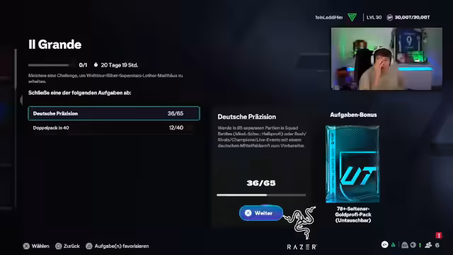 00:03:13Der Stream beginnt mit der Vorstellung der aktuellen FIFA Manager-Karriere. Es wurde mit Ibrahimovic bei Schalke 04 gespielt, der Aufstieg in die Bundesliga gefeiert und anschließend eine unerwartete Ausleihe nach Indien verkündet. Diese Entwicklung löst deutliche Verärgerung aus, besonders aufgrund des seltsamen Vereinslogos (Tiger) und der ungewollten Liga. Gleichzeitig wird das Erreichen von Level 30 als Punktlandung gefeiert, was direkte Konsequenzen für das Ultimate Team hat.