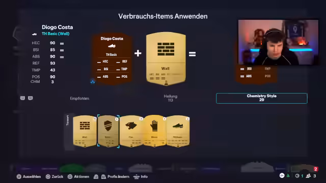 00:10:06Die Fertigstellung des Messi-Evo-Teams nimmt den Hauptteil des Streams ein. Der Streamer zeigt detailliert, welche Boni er auf die Karte gibt, wie er die Werte optimiert und welche strategischen Entscheidungen er trifft. So wird beschrieben, wie er trotz 94 Pace einen starken Schuss erhält und welche Playstyles er nutzt. Gleichzeitig wird das Problem angesprochen, dass die Boni-Evolutionen bald ablaufen und daher zügig genutzt werden müssen, um sie nicht zu verlieren.