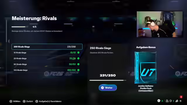 03:51:12Ein Rivals-Spiel wird gespielt, bei dem der Gegner ein Team mit einem für seine Rolle untypischen Spieler, Mbappé auf Rechtsaußen (RM), aufstellt. Trotz der ungewöhnlichen Aufstellung wendet der Gegner einen sehr aggressiven und physischen Spielstil an, der den Streamer überrollt. Die Kombination aus der Abwehr und dem Angriff des Gegners wird als extrem stark beschrieben, obwohl die einzelnen Karten nicht als die besten gelten. Der Streamer ist trotz seiner Bemühungen am Ende chancenlos und verliert das Spiel.