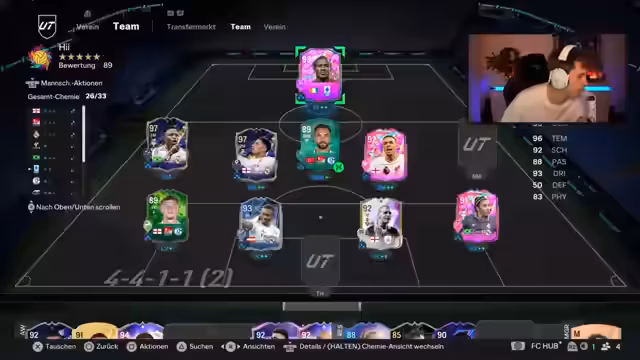 00:09:34Der Streamer äußert sich humorvoll über die 87. und 88. Spielminute, möchte aber keine Diskussion darüber im Chat. Nach dem Öffnen weiterer Packs wird Zeydo Dumbia herzlich willkommen geheißen. Es folgt eine Diskussion darüber, ob Winnie oder Dumbia als Stürmer besser geeignet ist, wobei die Community ihre Meinungen äußert. Der Streamer erwähnt, dass er eine Evolution vergessen hat abzuschließen und plant, Brian Lasme in eine Evo zu stecken, um seine Werte zu verbessern. Es werden verschiedene Spieler diskutiert, die für das Team interessant sein könnten, darunter Alaba und Yaya Toure. Der Streamer betont, dass er bei Squad Building Challenges (SBCs) nicht auf die Kosten achtet, sondern darauf, welche Spieler ihm am meisten zusagen. Es werden Doppel 86+ Packs geöffnet, und der Streamer freut sich über gezogene Spieler wie Kimmich und Gündogan.