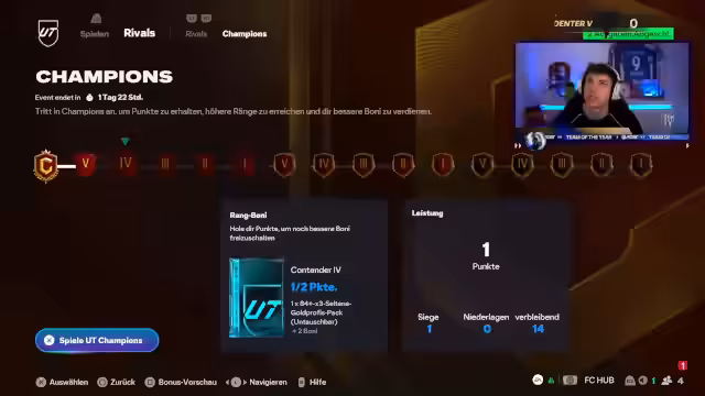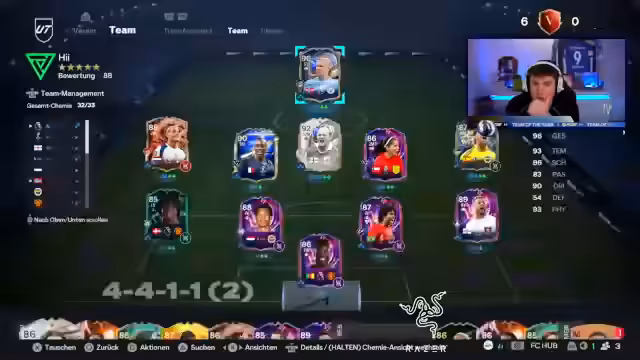 05:02:12Die intensive Verfolgung der Team of the Year-W Weekend League (WL) steht im Fokus des Streamers. Er kündigt an, für die nächsten zwei Wochen konsequent zu grinden, wobei er die WL als das Geile bezeichnet. Der Rhythmus sieht Dienstag bis Donnerstag im Menü vor, während Freitag und Sonntag für Brett-Spiele reserviert sind. Der Streamer betont, dass trotz der hohen Spielanzahl von 10 bis 15 WLs pro Woche der Spaß und die Motivation durch die spezielle Team-Zusammensetzung erhalten bleiben, auch wenn dies bedeutet, komplett zu schwitzen und sich voll reinzuhängen.