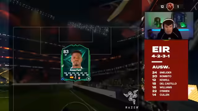 00:11:53Der Streamer zeigt das finale Team, das er für die Weekend League verwenden wird. Es besteht aus einer Mischung aus Icon-Spielern wie Pelé und Zidane sowie modernen Evolutionskarten. Das Team ist so aufgebaut, dass es sowohl Tiki-Taka als auch eine körperlichere, direktere Spielweise ermöglicht. Nach der Vorstellung des Teams beginnt das erste Spiel der Weekend League. Der Streamer spielt gegen einen Gegner, der ein ähnlich starker Meta-Gegner zu sein scheint, und das Spiel startet mit einer hohen Intensität und schnellen Spielzügen.