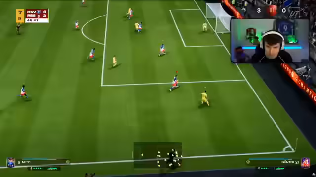 01:47:19Nach einem klaren 6-1-Sieg wird das Matching schwieriger, und der Streamer ist sich unsicher, ob er noch 15 Siege holen kann. Er kritisiert das Meta-Verhalten vieler Gegner, die nur über die Außenbahn angreifen oder nur mit bestimmten Spielern agieren. Bei einem engen Spiel gegen Wandeveen und Alberto ärgert er sich über künstliche Intelligenz (CPU), die ihm in entscheidenden Momenten nicht hilft und so gegnerische Tore ermöglicht.