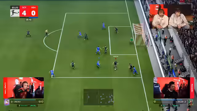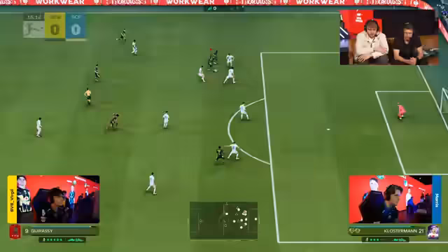 04:13:53Das Spiel zwischen Borussia Dortmund und Borussia Mönchengladbach beginnt. Dortmund, vertreten von Justin und Lukas, agiert von Beginn an dominant und lässt Gladbach kaum zur Entfaltung kommen. Virgil, der für Dortmund spielt, zeigt eine sehr ruhige und kontrollierte Spielweise in der Defensive. Seine schnellen Gegenstöße führen zu Torchancen. In der 12. Minute geht Dortmund in Führung, gefolgt vom 2:0 kurz darauf. Die Führung zur Halbzeit steht 3:1 für Borussia Dortmund.
