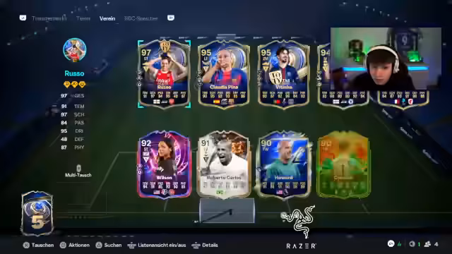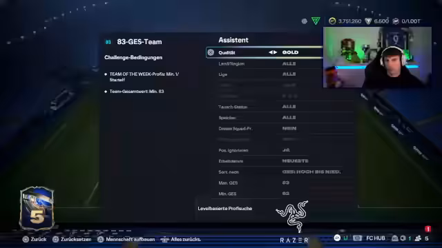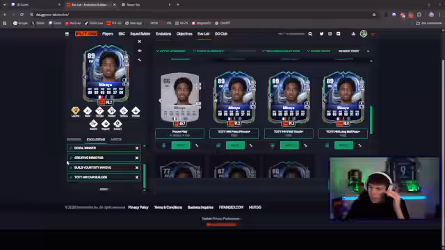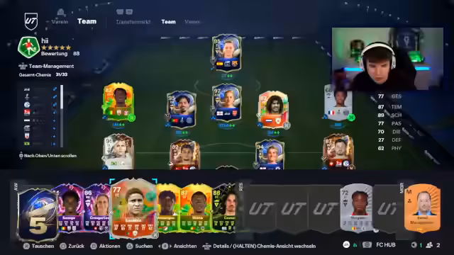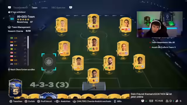 02:48:59Nach erfolgreicher Verbindung tauschen die Streamer über ihre aktuellen Projekte in FIFA Ultimate Team aus. Ein Streamer stellt die Frage, was er mit seiner großen Anzahl an SBC-Speicherkarten tun soll, insbesondere im Hinblick auf das laufende Team of the Year-Event. Es folgt eine tiefe Diskussion über die optimale Strategie für das Erstellen von Teams, die Wertung der Karten und die Entwicklung von Spielern durch Evolutions. Die Meinungen gehen auseinander, ob man auf die teuren Picks oder auf günstigeren Wege setzen sollte, um ein starkes Team zu bilden.