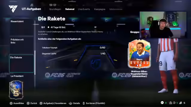 05:49:00Der Streamer berichtet über das Objective für 10 Rivals-Siege mit Franzosen im Team, das er fast abgeschlossen hat. Nachdem er es vollendet, kriege man die Foot Birthday-Karte. Bei den Playstyles diskutiert er die Wichtigkeit von Technical im zentralen Mittelfeld. Die Evolution des Season Pass wird als teuer und nicht sonderlich attraktiv bewertet. Auch die neue Evolution „Rakete“ wird kritisiert, da der Pace-Boost nur bis maximal 87 geht, was ineffizient ist. Er bevorzugt daher Finesse oder Flachschuss.
